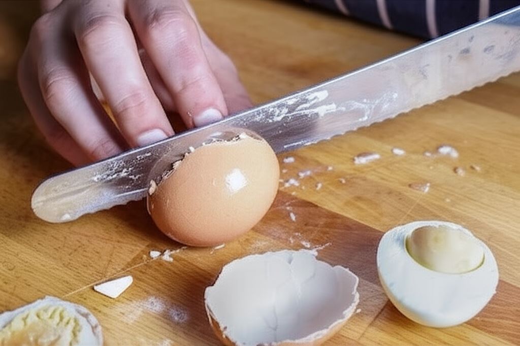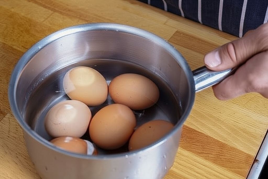 Ugotuj jajka na twardo (10 minut od momentu wrzenia), potem schłodź je w zimnej wodzie.