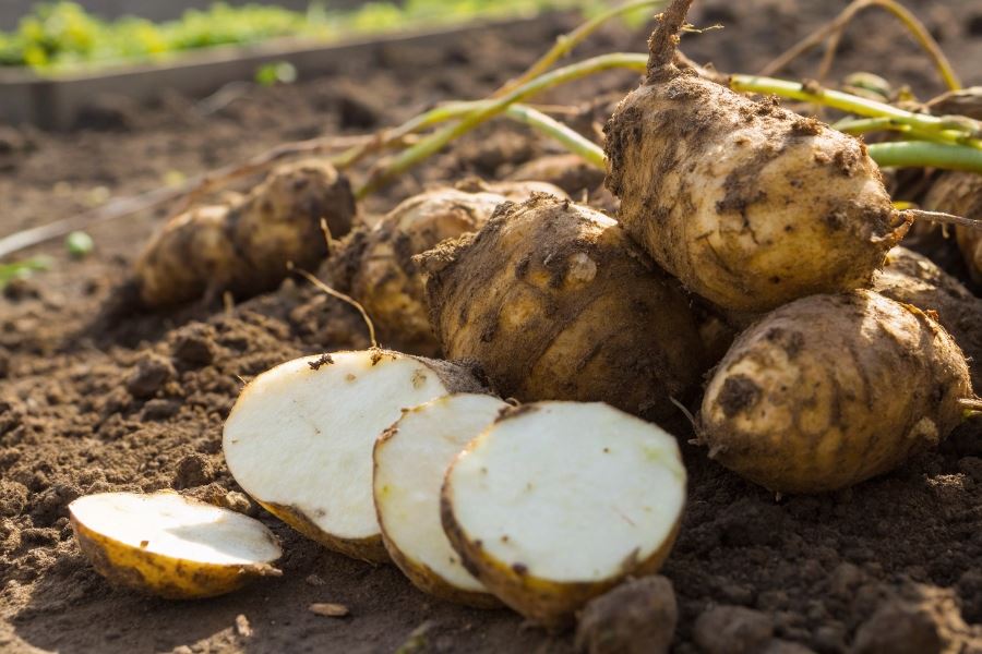 W porównaniu z ziemniakami, topinambur zawiera o 50% więcej białka, trzykrotnie więcej żelaza i znacząco więcej potasu. Jego indeks glikemiczny wynosi zaledwie 15, podczas gdy ziemniaki mają IG na poziomie 70-90, co czyni topinambur idealnym wyborem dla osób kontrolujących poziom cukru we krwi.