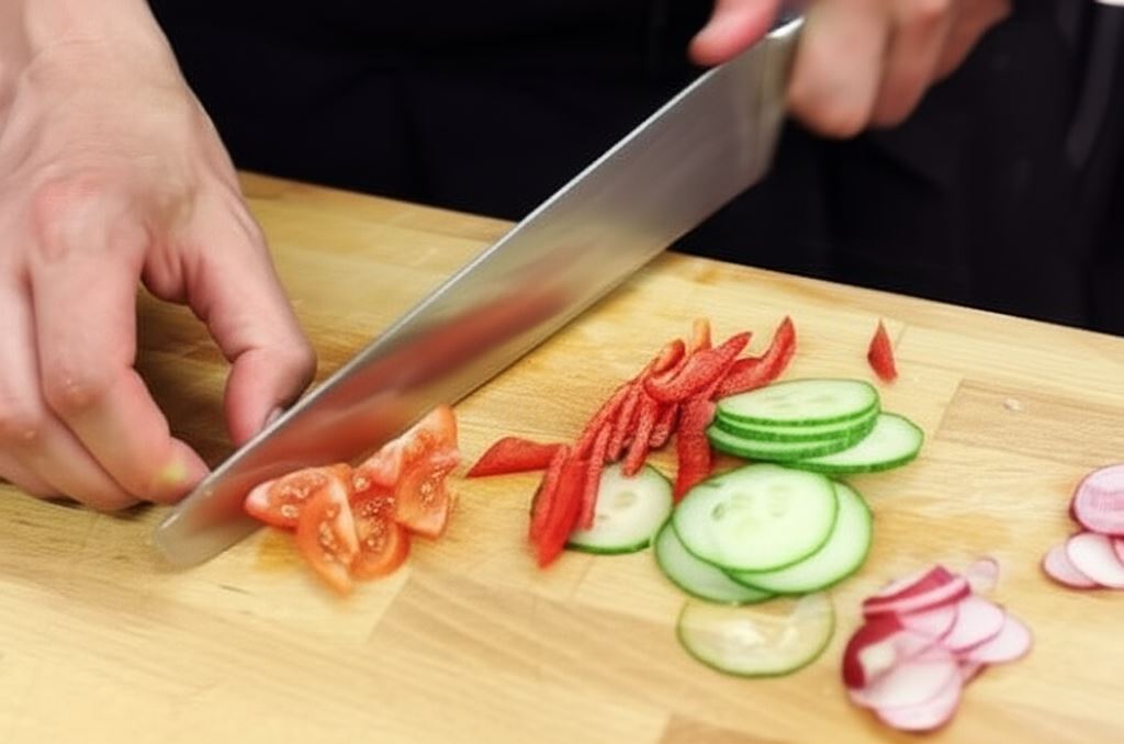 Rzodkiewki i ogórka potnij na cienkie plasterki, oliwki przepołów, pomidorki podziel na ćwiartki, a paprykę pokrój w paski.