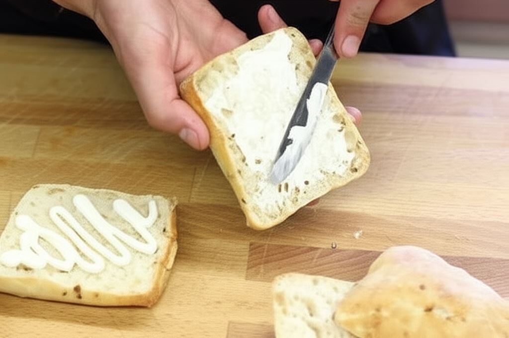 Przekrój ciabattę wzdłuż na połowy i posmaruj sosem Hellmann's.