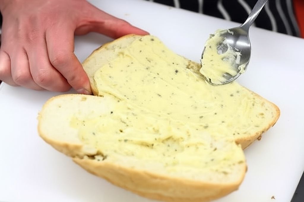 Ciabattę przekrój na pół wzdłuż i posmaruj majonezowym sosem.