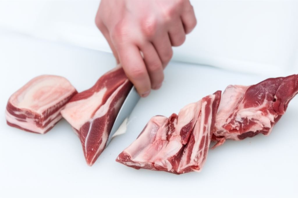 Żeberka podziel na porcje po dwie kości. Opłucz i oczyść ze zbędnych fragmentów tłuszczu.