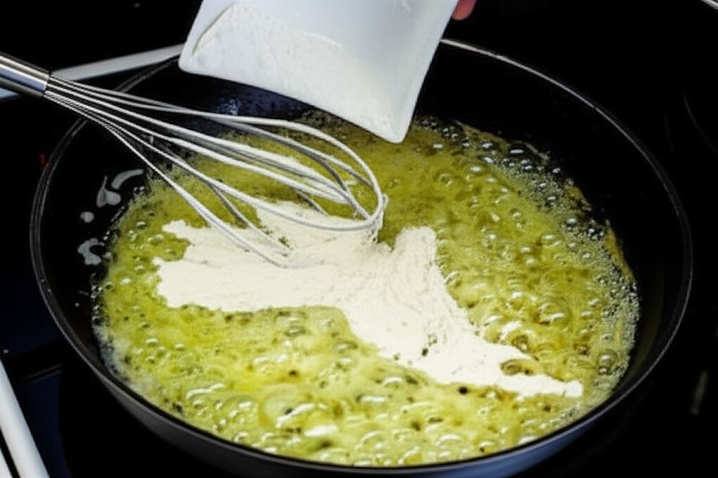 W międzyczasie pokrój cebule w kostkę, zeszklij na maśle, wsyp mąkę i dokładnie wymieszaj.