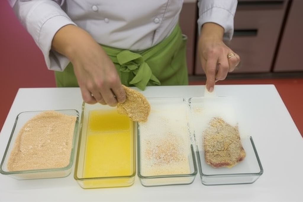 Karkówkę potnij na plastry, ubij. Zanurz w jajku i obtocz w bułce tartej.