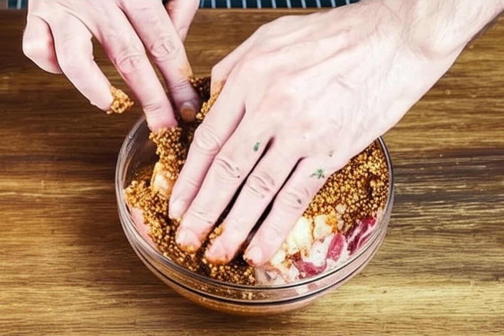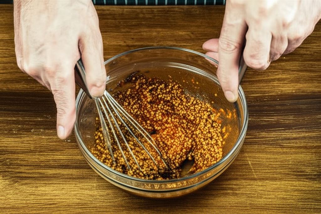 Wymieszaj musztardę z Przyprawą Knorr, słodką papryką oraz roztartym zielem angielskim.