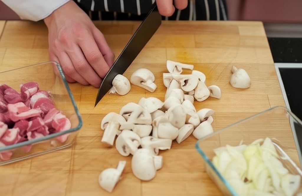 Karkówka to jeden z najbardziej uniwersalnych kawałków wieprzowiny. Zawiera odpowiednią ilość tłuszczu, dzięki czemu mięso pozostaje soczyste i miękkie nawet po dłuższym gotowaniu. W połączeniu z grzybami tworzy klasyczne połączenie smaków, znane i lubiane w polskiej kuchni od pokoleń.