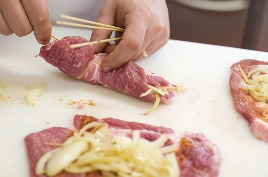 Kluczem do sukcesu tej potrawy jest jakość mięsa – warto wybrać świeżą karkówkę o delikatnym marmurkowaniu. Rozbicie mięsa tłuczkiem nie tylko zmiękcza strukturę, ale także pozwala lepiej wchłonąć aromaty przypraw. Przebicie roladek wykałaczką to nie tylko kwestia estetyki, ale praktyczne rozwiązanie ułatwiające obracanie podczas grillowania.