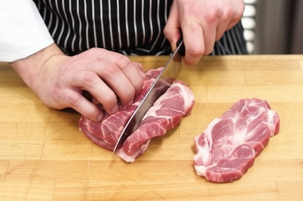Mięso potnij na grube, około centymetrowe plastry. Jeżeli kawałki są zbyt duże, przetnij je na połowę.