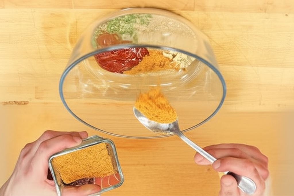 Suszone grzyby rozdrobnij na proszek w pojemniku miksera. Do zmielonych grzybów wsyp Przyprawę do grilla Knorr, posiekany rozmaryn, ketchup Hellmann's, posiekany czosnek i olej.