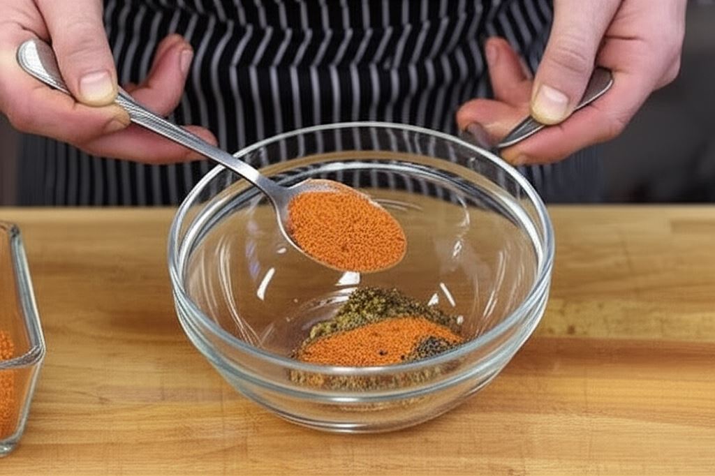 W misce wymieszaj razem oliwę, musztardę francuską, Przyprawę Knorr i pokruszone przyprawy. W uzyskanej marynacie umieść mięso i odstaw na minimum jedną godzinę w chłodnym miejscu.