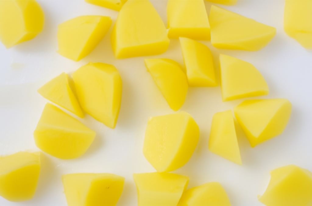Ziemniaki, cukinię oraz paprykę pokrój na grube kawałki zbliżonej wielkości.