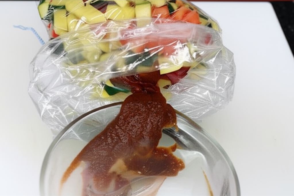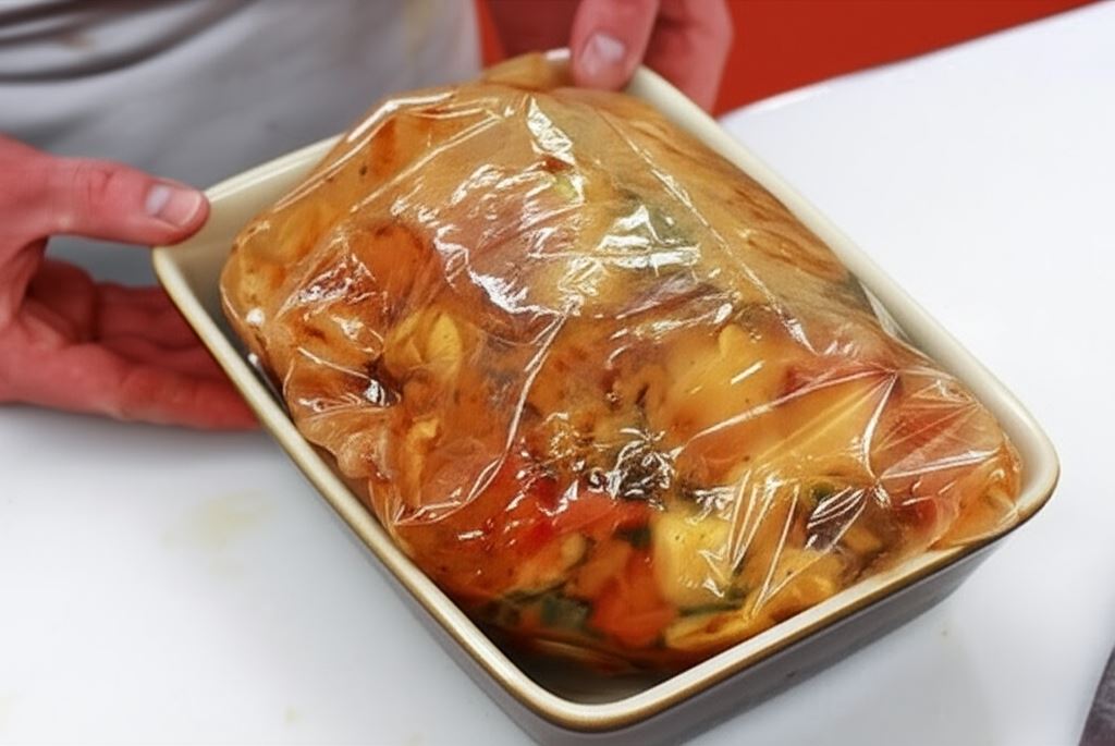 Potem wszystkie składniki potrawy posmaruj marynatą, włóż do woreczka (załączonego do opakowania Przyprawy do karkówki Knorr) i zamknij klipsem.