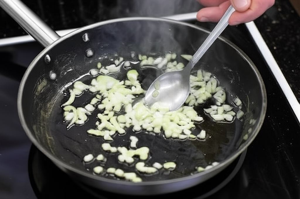 Cebulę posiekaj w małą kostkę i zrumień na patelni, aż nabierze złotego koloru.