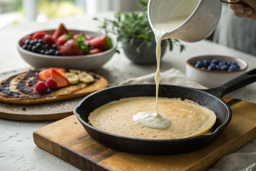 Kefir pełni kluczową rolę w cieście naleśnikowym bez jajek, zastępując funkcje, które normalnie spełniałyby jajka: