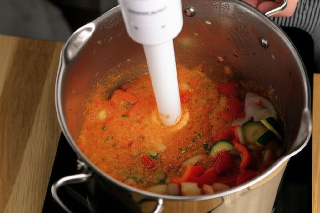 Potem, przy użyciu blendera, zmiksuj warzywa na jednolitą masę.