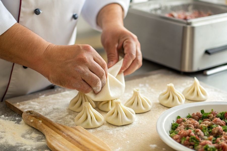 - Zbyt cienkie rozwałkowanie – chinkali mogą pękać podczas gotowania