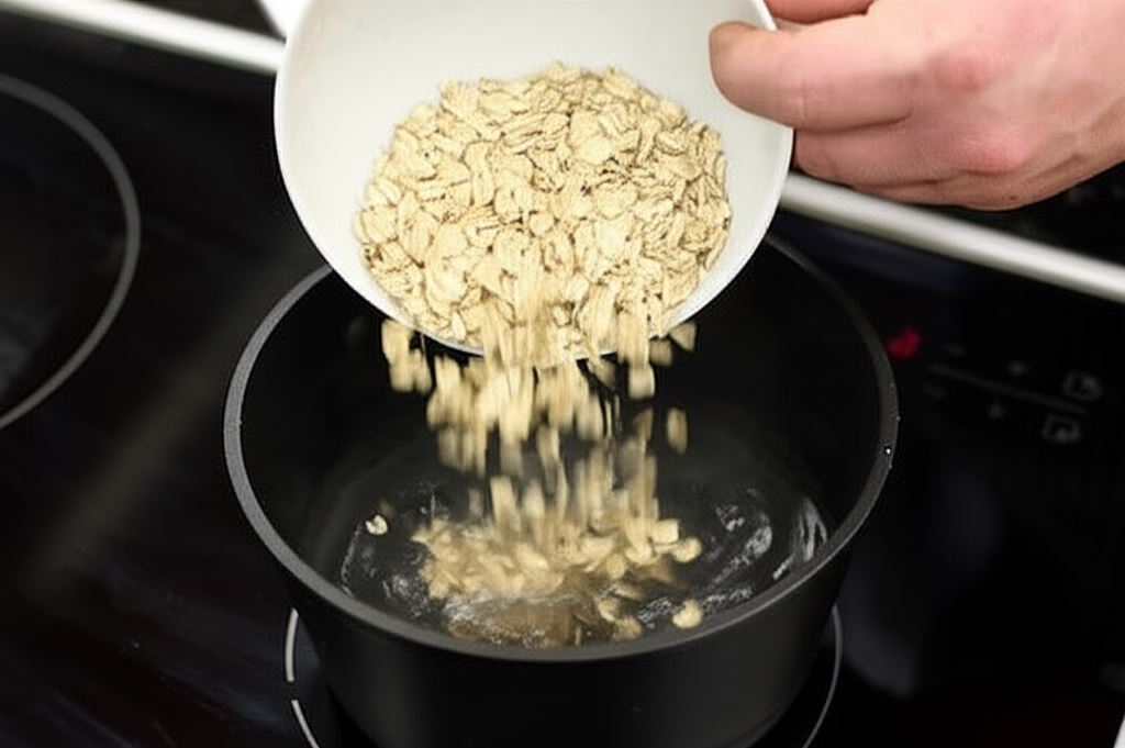 Ugotuj płatki owsiane do miękkości, po czym odcedź z wody. Ostudź je i umieść w misce.