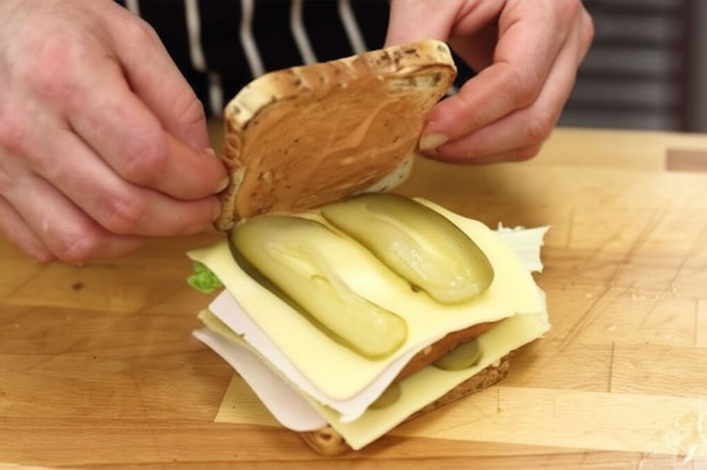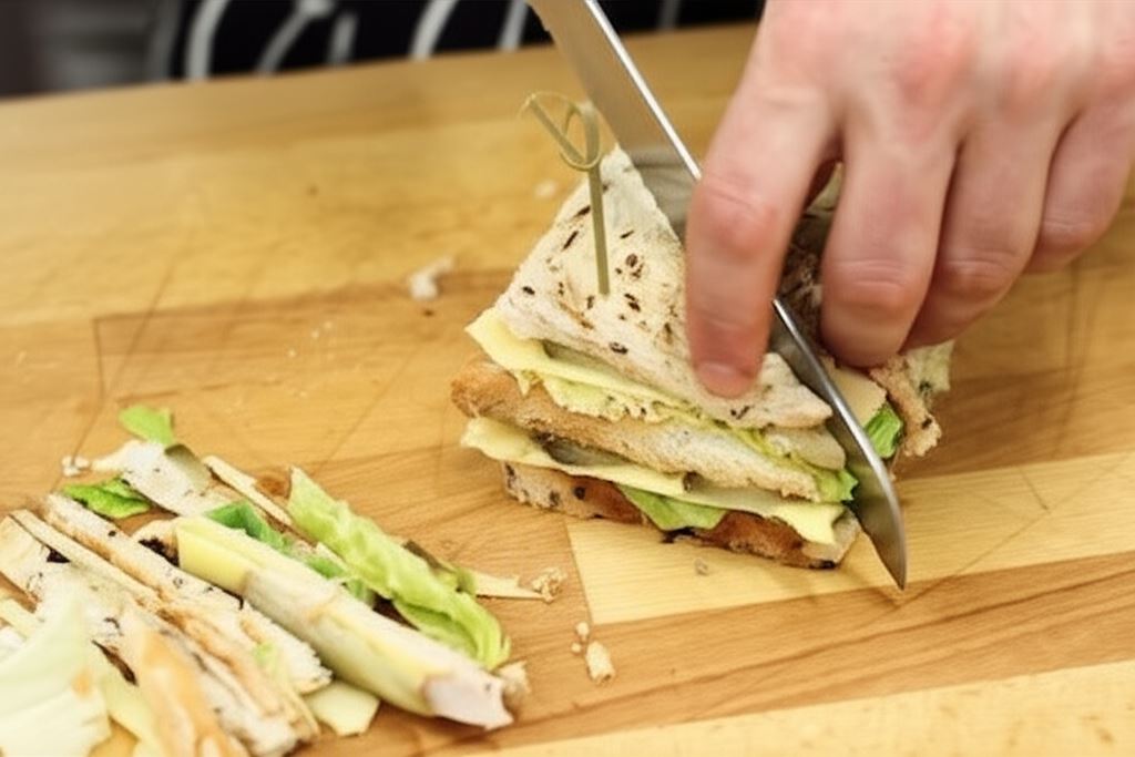 Opiekanie pieczywa w tosterze nie tylko nadaje kanapkom chrupkości, ale również sprawia, że dłużej zachowują świeżość i nie robią się wilgotne. Dzięki wykałaczkom wbitym w każdy róg kanapki, wszystkie warstwy pozostają na swoim miejscu, co ułatwia jedzenie bez bałaganu.