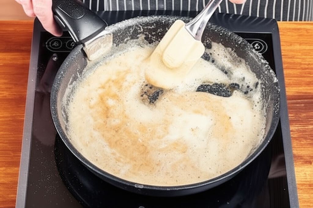 Bułkę tartą zrumień na maśle, polej gorącymi kluskami.