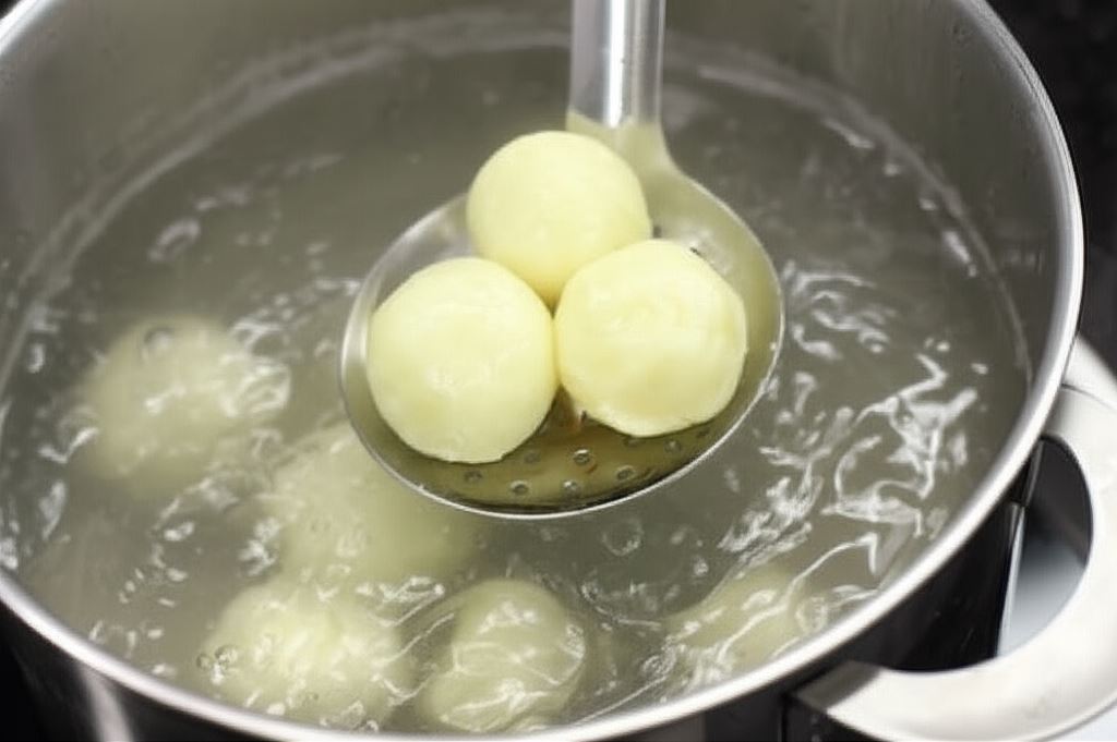 Przygotowane knedle wrzuć do wody i gotuj kilka minut, dopóki nie wypłyną.