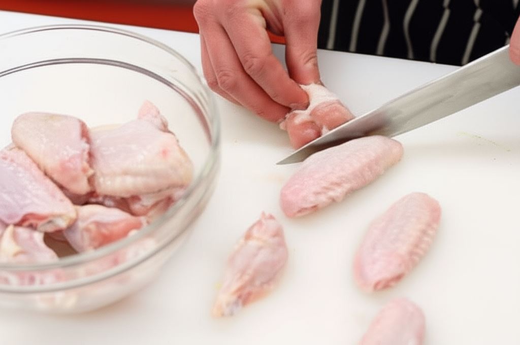 Skrzydełka opłucz, osusz i odetnij końcówki (nazywane lotkami).