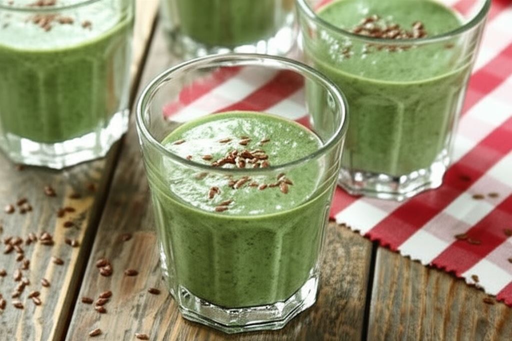 Jarmuż to prawdziwy superfood dostępny niemal przez całą zimę. Jest bogaty w witaminy A, C i K oraz wapń i żelazo. Siemię lniane mielone, które dodajemy do koktajlu, zawiera cenne kwasy tłuszczowe omega-3 i błonnik, wspierające pracę układu trawiennego i metabolizm.