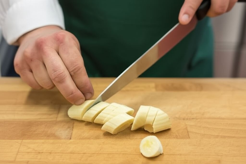 Banana obierz ze skórki i potnij na mniejsze kawałki.