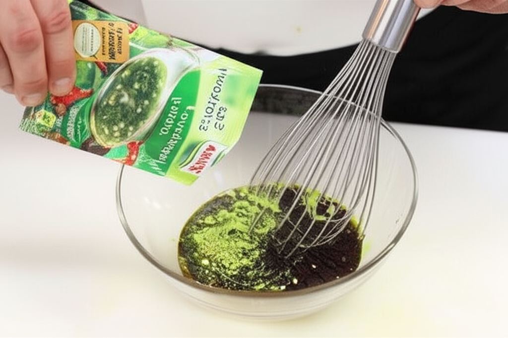 Sos sałatkowy Knorr połącz z olejem, dwiema łyżkami wody, kieliszkiem alkoholu i miodem.
