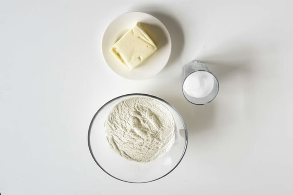 Przesiewamy mąkę z proszkiem do pieczenia. Dodajemy masło, cukier i sól. Siekamy wszystkie składniki.