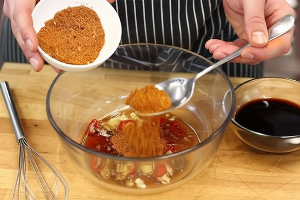 W obszernej misce połącz sos sojowy, miód, cukier, olej sezamowy, czosnek, imbir i chili, przypraw przyprawą do grilla Knorr.