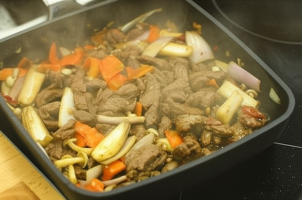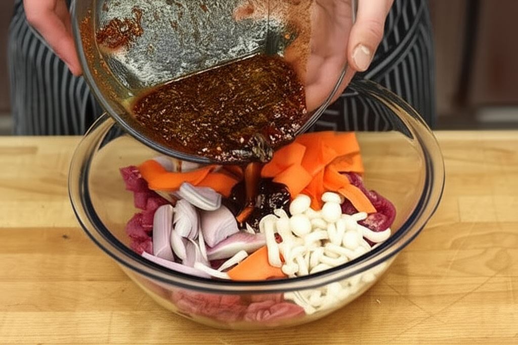 Odkryj autentyczny smak Korei w swoim domu dzięki aromatycznemu bulgogi z grzybami enoki! To klasyczne danie koreańskie zachwyca delikatnie pokrojoną wołowiną marynowaną w słodko-pikantnym sosie, wzbogaconą o chrupiące warzywa i wyjątkowe grzyby enoki. Sekret tego dania tkwi w perfekcyjnym połączeniu smaków: słodkiego miodu, aromatycznego imbiru, ostrego chili i głębokiego sosu sojowego. Wszystkie składniki harmonijnie łączą się na rozgrzanej patelni grillowej, tworząc potrawę, która przeniesie Cię prosto na ulice Seulu.