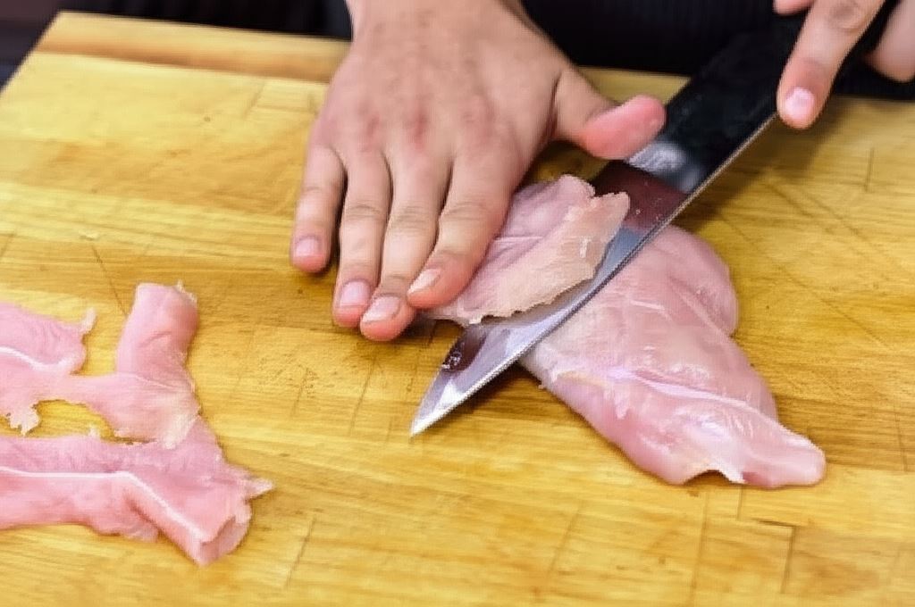 Indyczą pierś pokrój na cienkie plastry, po czym podziel je jeszcze na cienkie, długie paski. W każdy z pasków zawiń śliwkę przekrojoną na połowę.