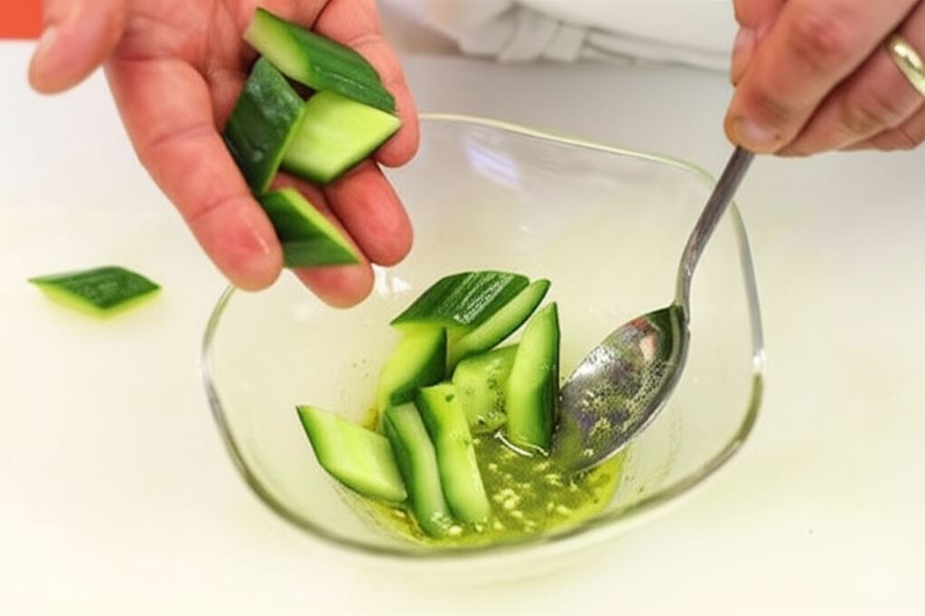 Ogórki wrzuć do sosu i odstaw, aby się zamarynowały przez 10 minut.