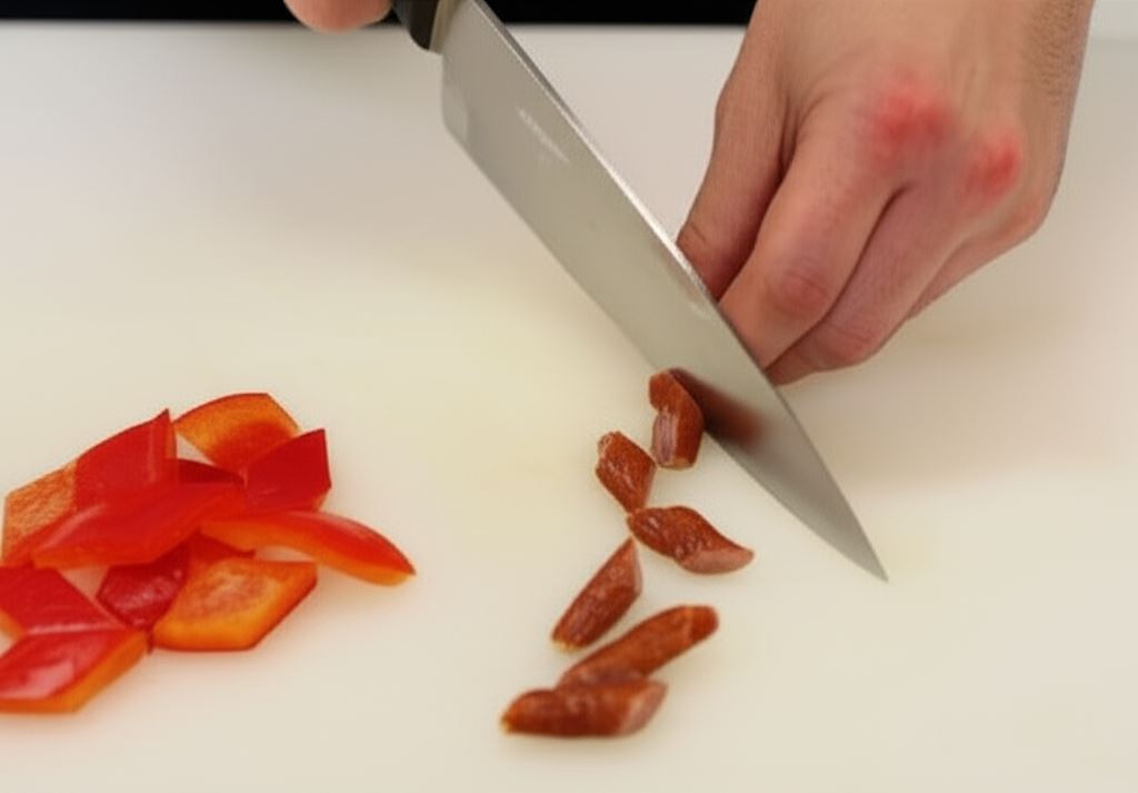 Kabanosy potnij ukośnie w odległościach 2 centymetrowych.