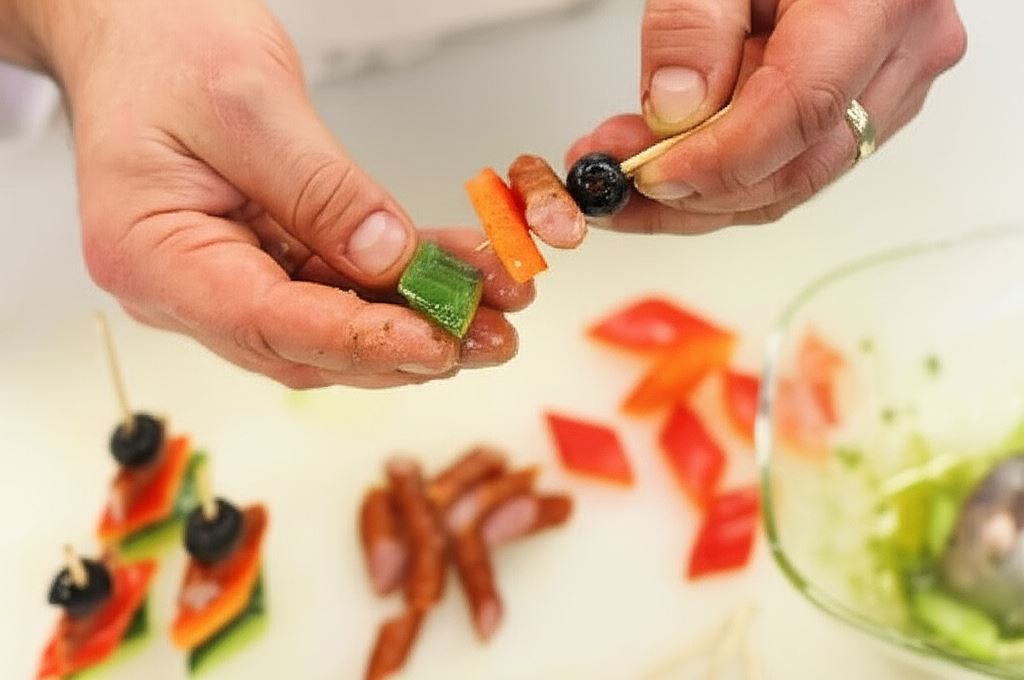 Ogórki marynowane stanowiące podstawę koreczków nie tylko nadają im stabilności, ale także zapewniają doskonały kontrast smakowy z pozostałymi składnikami. Marynata czosnkowo-ziołowa sprawia, że ogórki zyskują głębszy, bardziej wyrazisty smak, który harmonijnie łączy się z pikantnym kabanosom i słodką papryką.