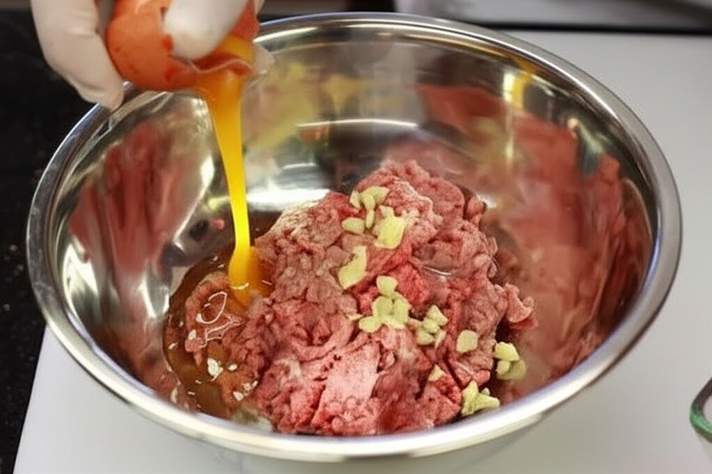 Starannie połącz mięso z jajkiem, czosnkiem i posiekaną w kostkę papryczką. Przypraw pieprzem i solą wedle uznania (jeśli uważasz, że jest to potrzebne).