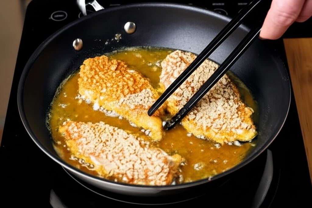 Tak przyrządzone kotlety drobiowe smaż na oleju, aż staną się rumiane, chrupiące i odpowiednio wysmażone wewnątrz.