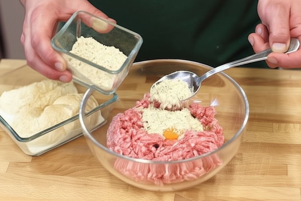 Bułkę kajzerkę zamocz w mleku, natkę drobno posiekaj. Mięso umieść w misce i wymieszaj z odciśniętą kajzerką i jajkiem. Przypraw Przyprawą do mięsa mielonego Knorr aby podkreślić smak i wymieszaj na jednolitą masę.