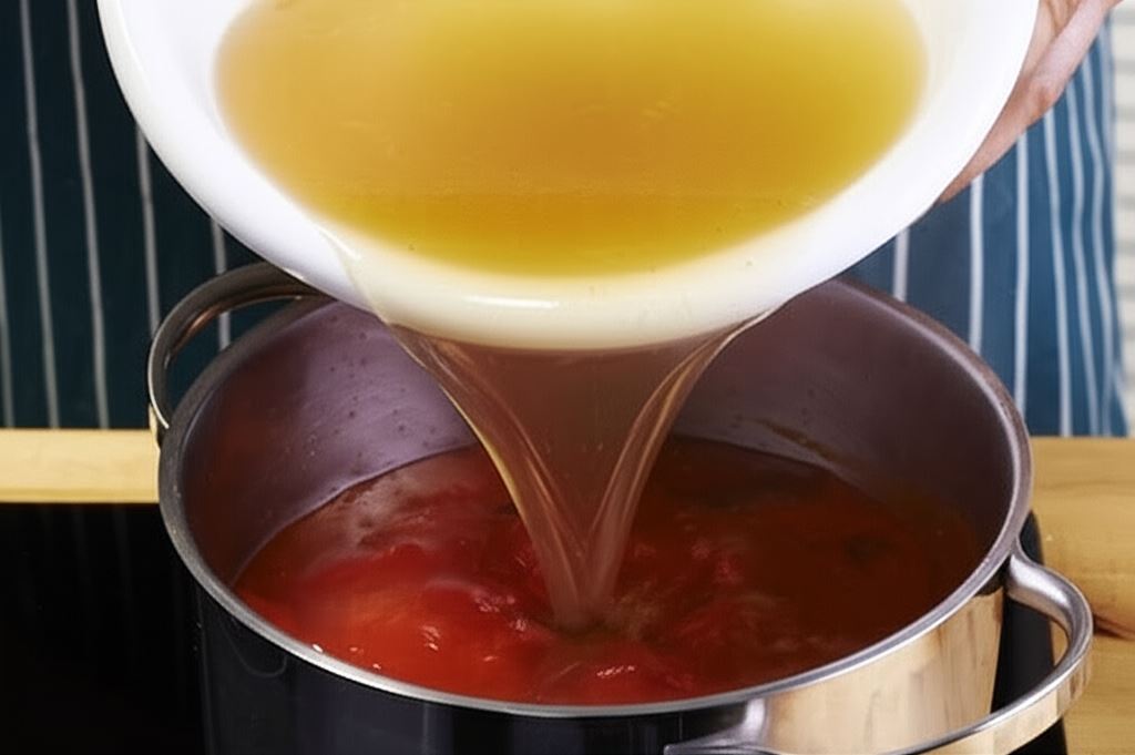 Potem zalej całość rosołem przygotowanym z bulionetki i gotuj przez kilka minut.