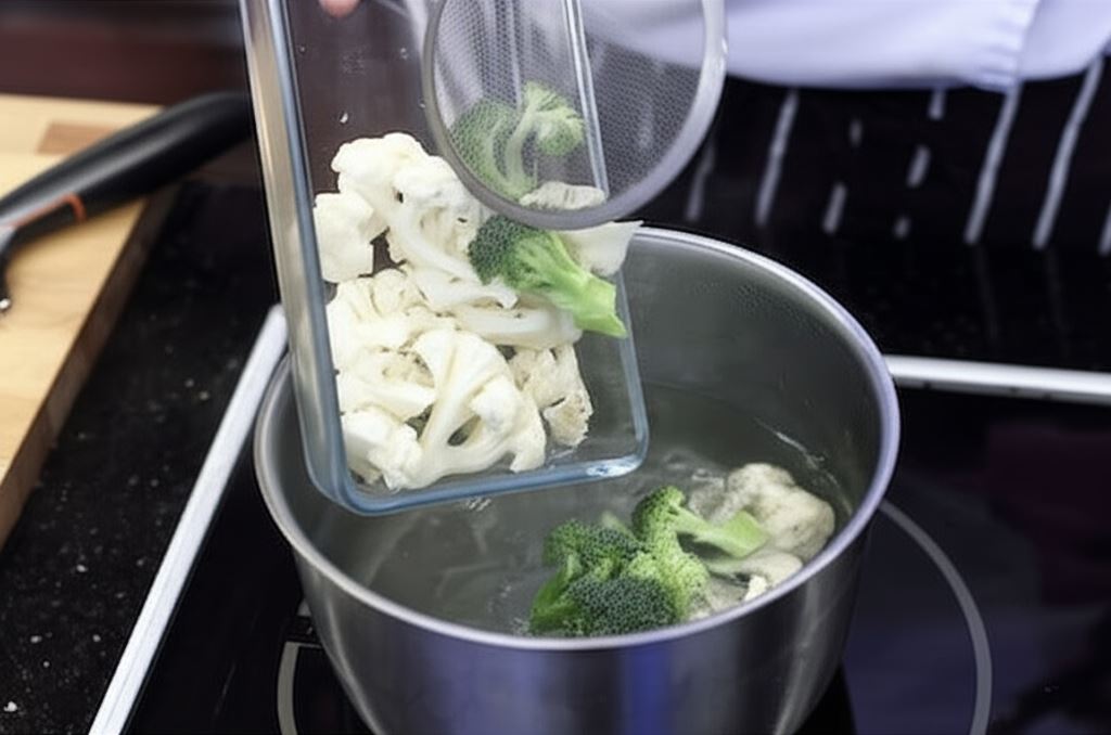 Świeże warzywa podziel na mniejsze różyczki i ugotuj w wodzie aż zmiękną. Warzywa mrożone ugotuj od razu po otwarciu opakowania przez 1 minutę.