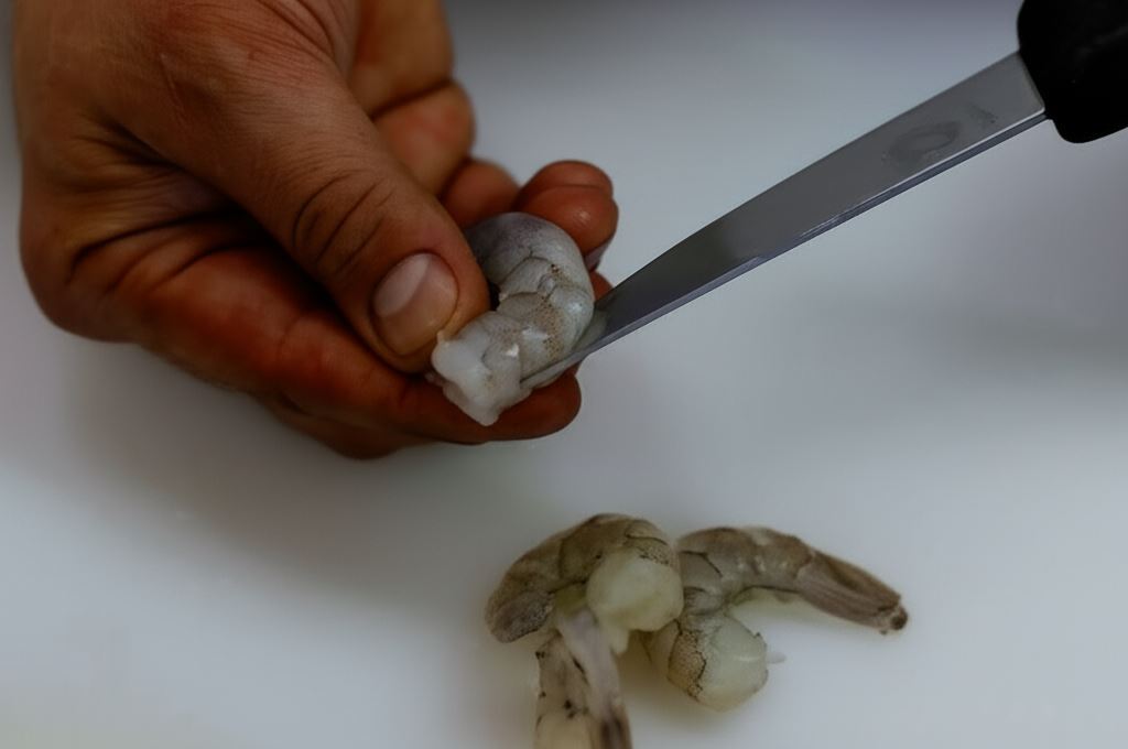 Krewetki oczyść z pancerzyków i jelit, delikatnie nacinając je wzdłuż.