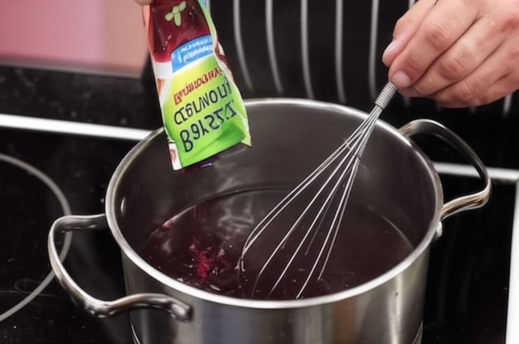 Do gotującej się wody wsyp barszcz Knorr. Możesz zastąpić wodę domowym wywarem z mięsa i warzyw. Po dodaniu barszczu nie gotuj już zupy, tylko wszystko dokładnie wymieszaj i dodaj łyżkę kwaśnej śmietany.