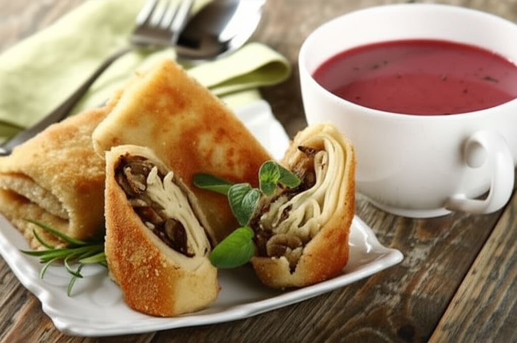 Krokiety z pieczarkami i barszcz czerwony – klasyka polskiej kuchni