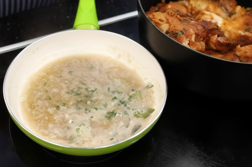 W oddzielnym garnku zagotuj marynatę, polej nią mięso w rondlu i duś na niskim ogniu, częściowo nakryte, przez około 40 min., podczas duszenia dolewając trochę wody. Przed serwowaniem dopraw sos solą do smaku.