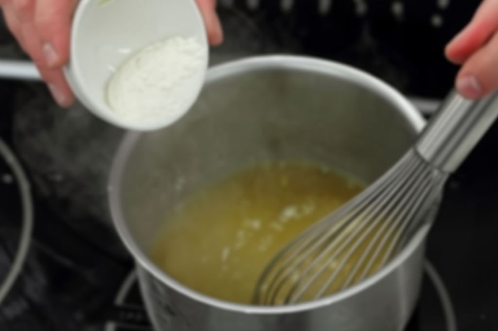Kiedy mięso zmięknie, wyjmij je, odlej parę łyżek sosu z naczynia, połącz go z mąką, dodaj do pozostałego sosu. Zagotuj. Mięso serwuj pocięte na porcje, oblane sosem.