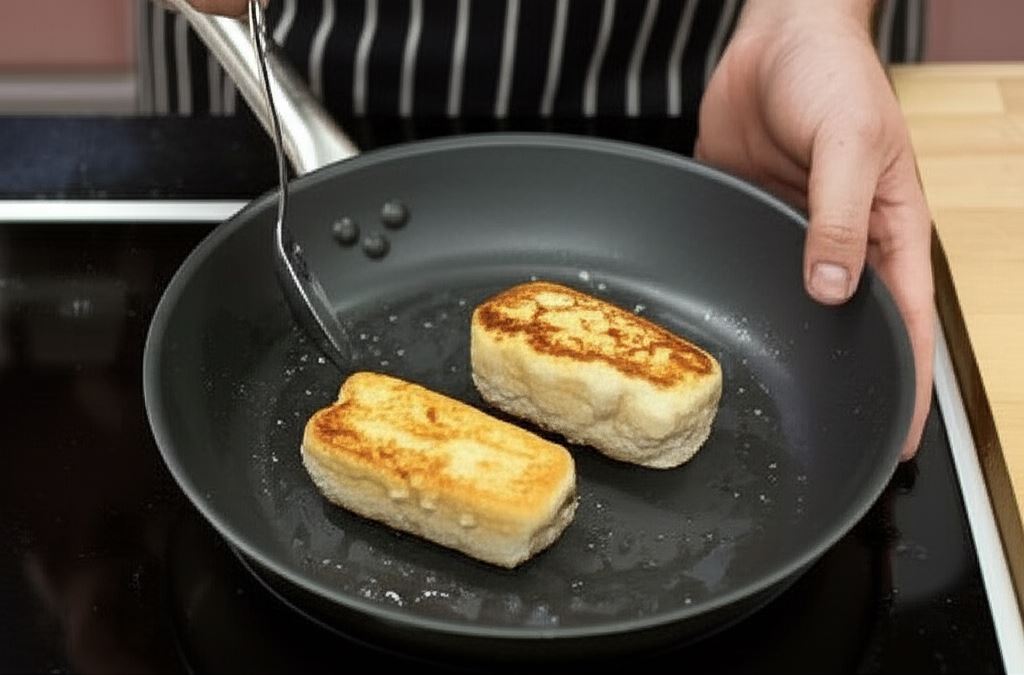 Roladki obtaczaj, zanurzając po kolei w mące, rozbitym jajku i bułce tartej. Smaż przez około 5 minut na średnio nagrzanym tłuszczu, przewracając od czasu do czasu. Potem umieść je na 15 minut w piekarniku rozgrzanym do 180 °C.