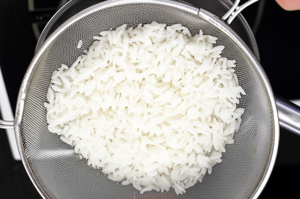 Ugotuj ryż według wskazówek na opakowaniu. Kurczaka oprósz lekko sezamem, serwuj na ryżu.