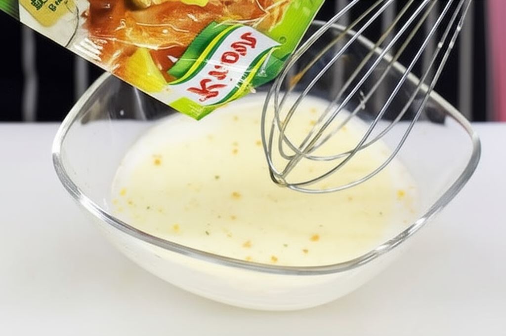 Wymieszaj Fix Knorr w 150 mililitrach wody i 150 mililitrach mleka, polej tą mieszanką składniki smażone na patelni.
