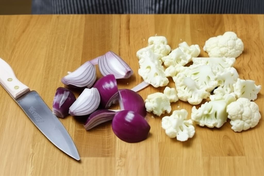 Cebulę obierz i podziel na cztery części. Kalafior podziel na różyczki.