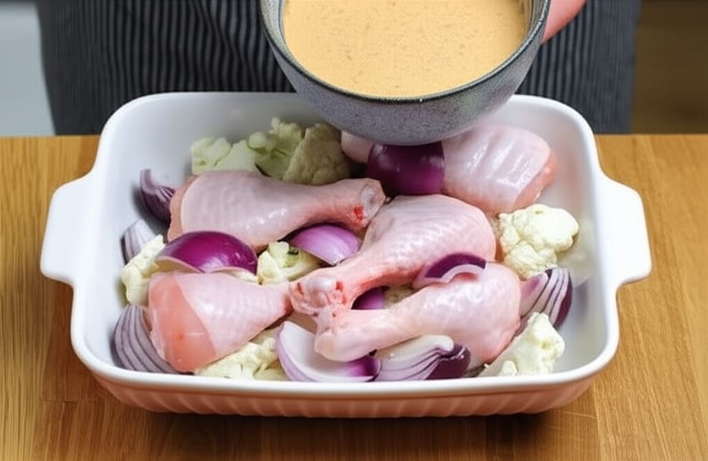Odkryj niezwykłe smaki Orientu z naszym przepisem na kurczaka po indyjsku! To danie to prawdziwa eksplozja aromatów, która przeniesie Cię w kulinarną podróż do słonecznych Indii. Soczyste kawałki kurczaka otulone kremowym sosem ze śmietaną, w towarzystwie chrupiących różyczek kalafiora i słodkiej cebuli, tworzą harmonijną kompozycję smaków.